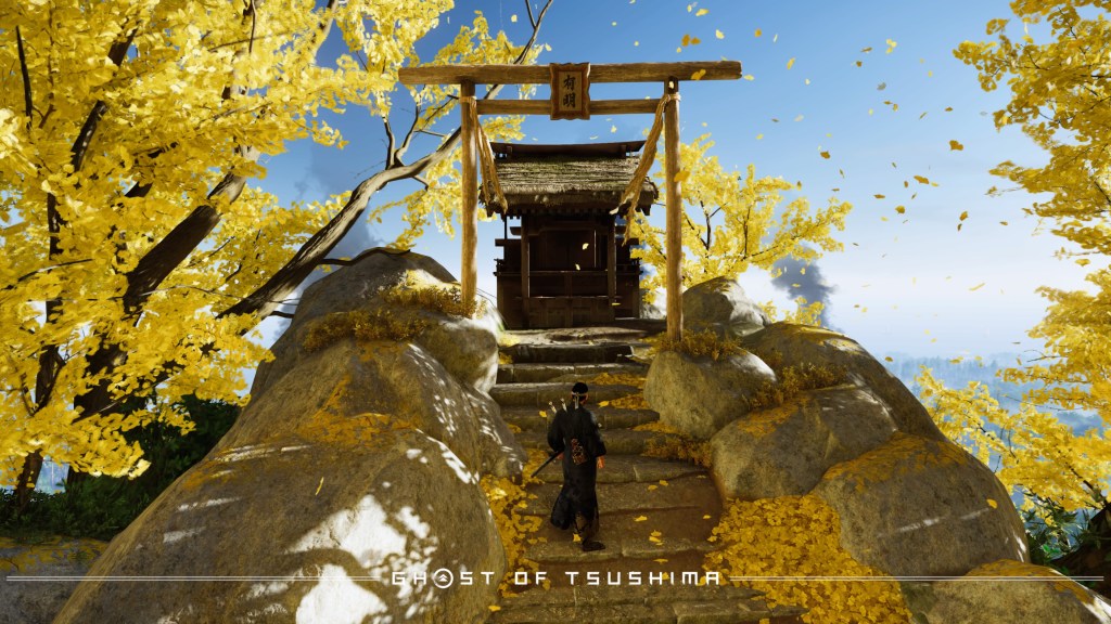 Each tale (even the minor ones) has a beautiful title sequence in this game, with stunning background imagery. Whoever was the director of photography for Ghost of Tsushima (if that’s a position that games have) did a stunning job. Watching this world through the lens of the game’s camera is already an amazing view, but the cutscenes for mission titles are just absolutely stunning. They truly make the game feel like a cinematic experience. Each Duel, each tale or mission feels like it’s own short episode in this one long Samurai film of a game.