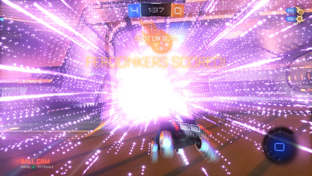 The PS4 provides pressure sensitive acceleration with its analog triggers. It works like an actual gas pedal in a car. The PS4 controller allows for more shot precision. You can move slowly as you set up for the perfect shot. For some reason, the game also feels faster on the PS4 (than anywhere else). It probably isn’t faster, since this game uses cross play (you can play with others on other platforms), but it sure feels like it. Perhaps there’s some sort of wind effect that translates better on the PS4.