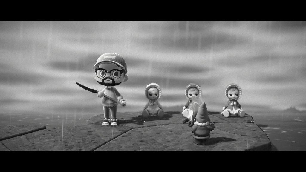 This spooky area was built on the edge of my island to keep the creepy monsters away. It works sort of like a scarecrow but for monsters instead. It’s just a tiny garden gnome reading to three spooky dolls. Why do I have a shovel in my hand? Perhaps there were more creepy dolls or gnomes at some point…
