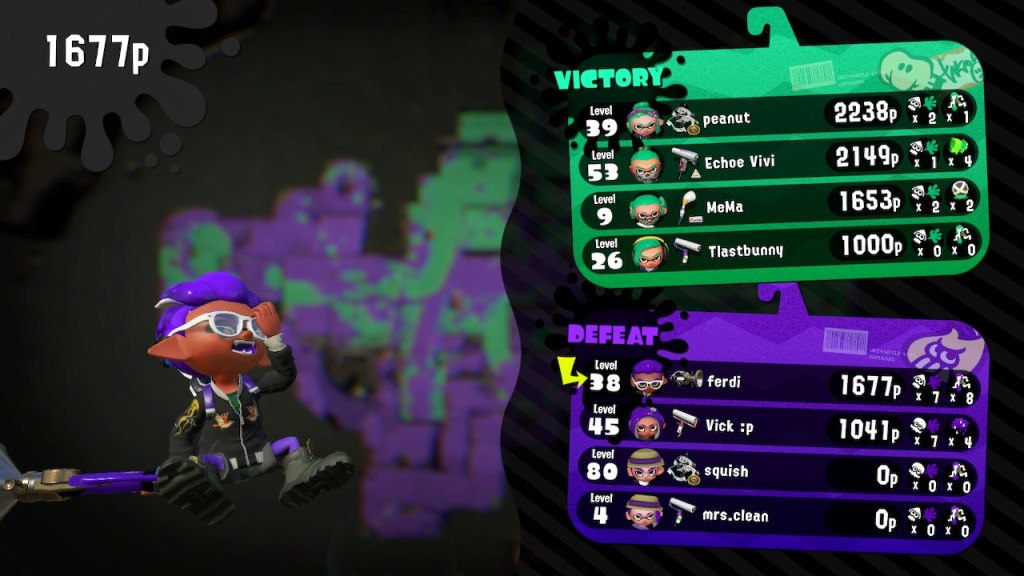 My average points per round in the Splatoon sequel is ~1000. I’m usually the top scorer (sometimes number two) for my team. The jump button is now “B” which makes more sense, also because ‘X’ makes a better map button. It was just weird to go back to the first game and feel like a real Salmonid because I didn’t know how to jump.