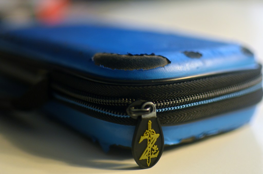 Let’s start there, since I’ve been using it for the past four years. I will talk about both cases (Zelda and Mario Kart) as one since they are basically the same case. The main difference is the exterior structure, since my Zelda one looks like it just returned from the Great War after traveling back-and-forth in my backpack for the past four years.