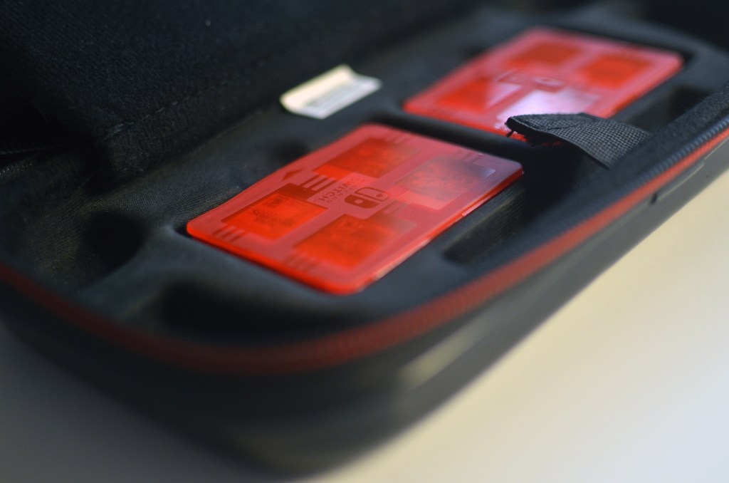 Each RDS case includes two neat little game cartridge cases, each holding up to four Switch game cartridges (also featuring a small SD card carrier). The cases remain hidden under your Switch when locked away, allowing you to keep up to eight Nintendo Switch games safe and secure. I ended up buying another pack of game cartridge holders, since I’m now up to thirteen physical games (twelve in these cases and one in my Switch). Since I still buy many physical games for my consoles, game storage is a big deal when searching for a case to protect my Switch.