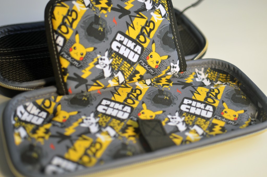 The PowerA Pikachu Protection case features a more simple Pokémon design. It’s black with a spray can-style Pikachu and his name spelled out in gold. The art feels like some street art that came straight off a wall in Japan. There’s only a few small design differences in the case layout.