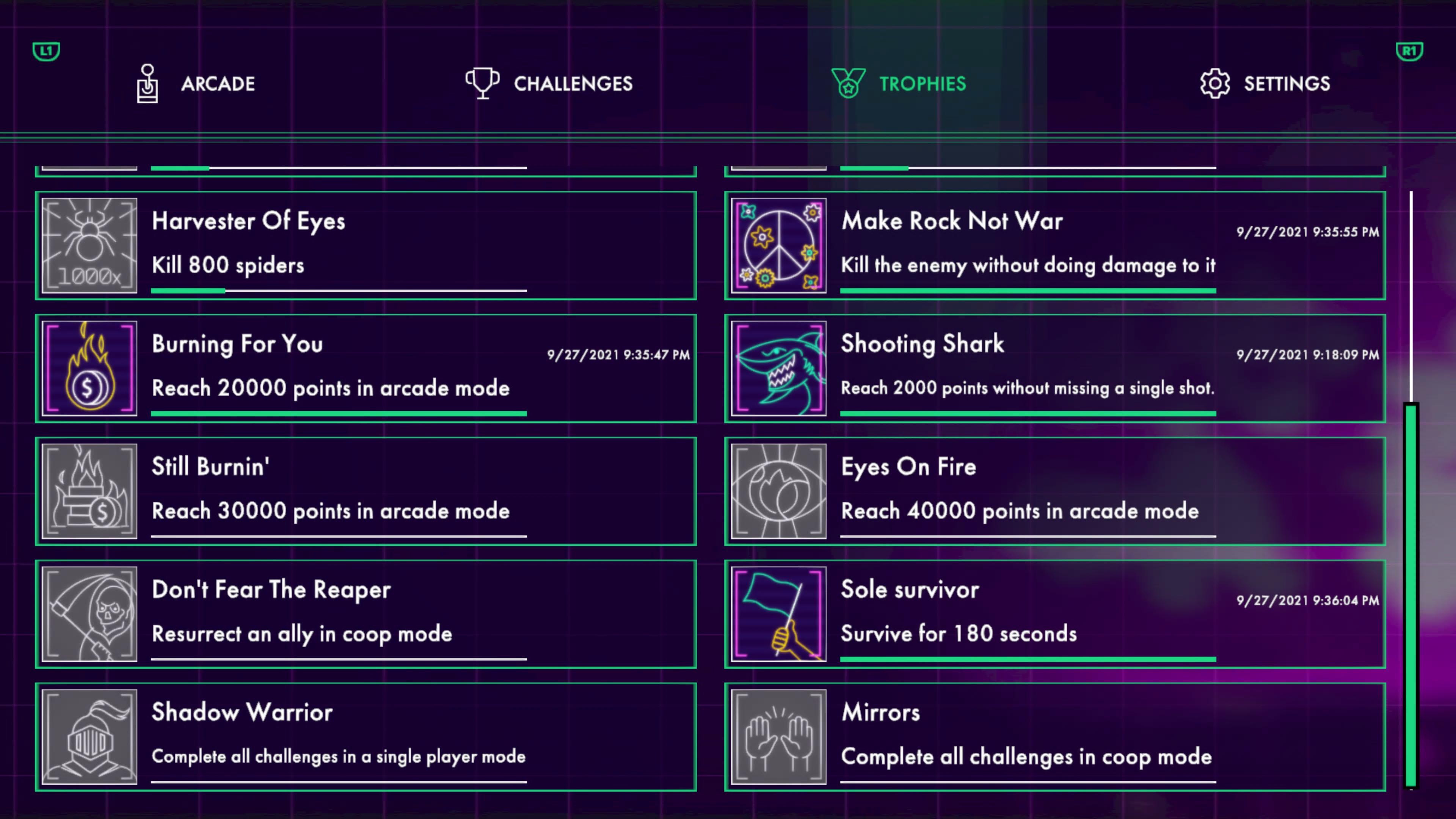 -Arcade and Challenge mode can both be enjoyed solo and co-op.