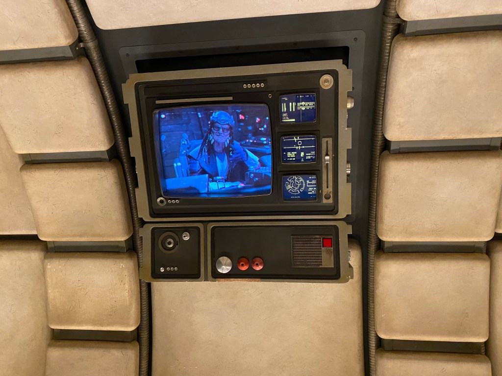 One of my favorite parts of the whole experience happens before you even get into the Falcon. The Falcon is now owned by one of my favorite Star Wars: Clone Wars characters, Hondo Ohnaka (voiced by Jim Cummings aka Winnie the Pooh, Tigger, Pete, Darkwing Duck, King Louie). It’s been really neat to see these animated characters come to life.