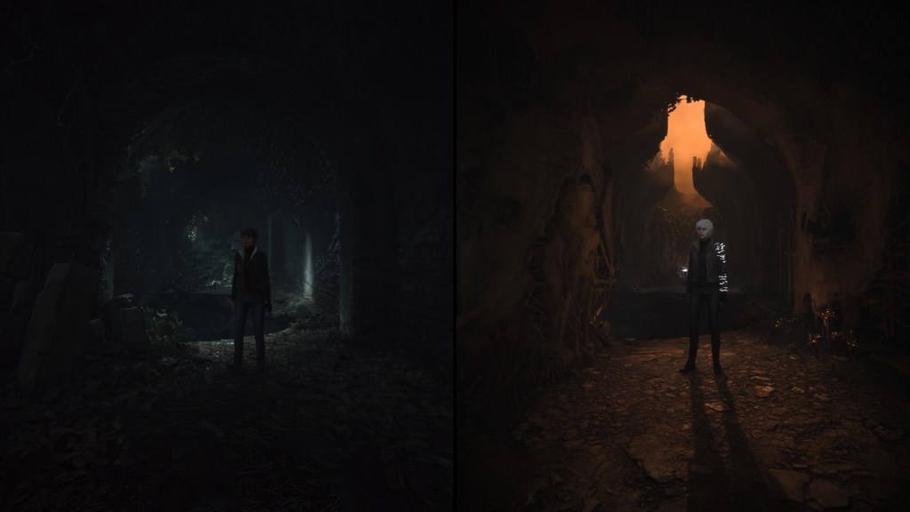 The main feature in The Medium is the dual-world rendering. I remember the early trailers for this game that showed off the rendering of two different versions of the same world in real time — sort of like in Ratchet and Clank: Rift Apart. The difference is in Ratchet and Clank you switch worlds to solve puzzles. In The Medium you must make it through both versions simultaneously, since Marianne is traveling through both at the same time.