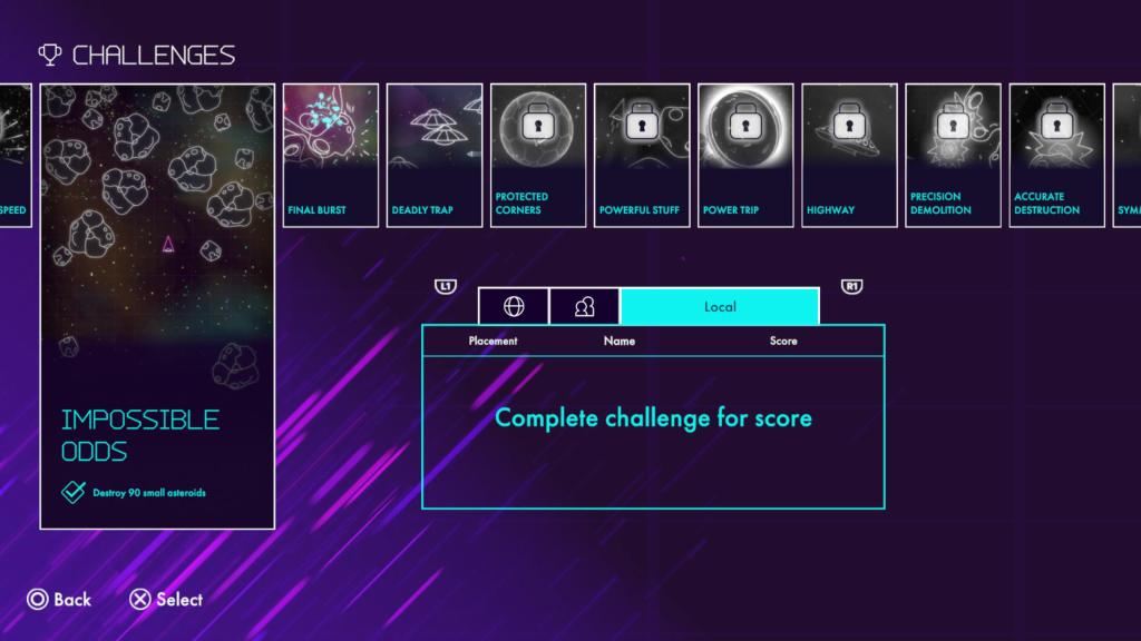Asteroids: Recharged offers two modes, arcade and challenge mode. Both can be played solo (single player) or with a buddy (co-op). The challenge mode sort of gives you a story mode to complete. Challenges are made up of different objectives, many of which have a different set up than playing a normal arcade round.