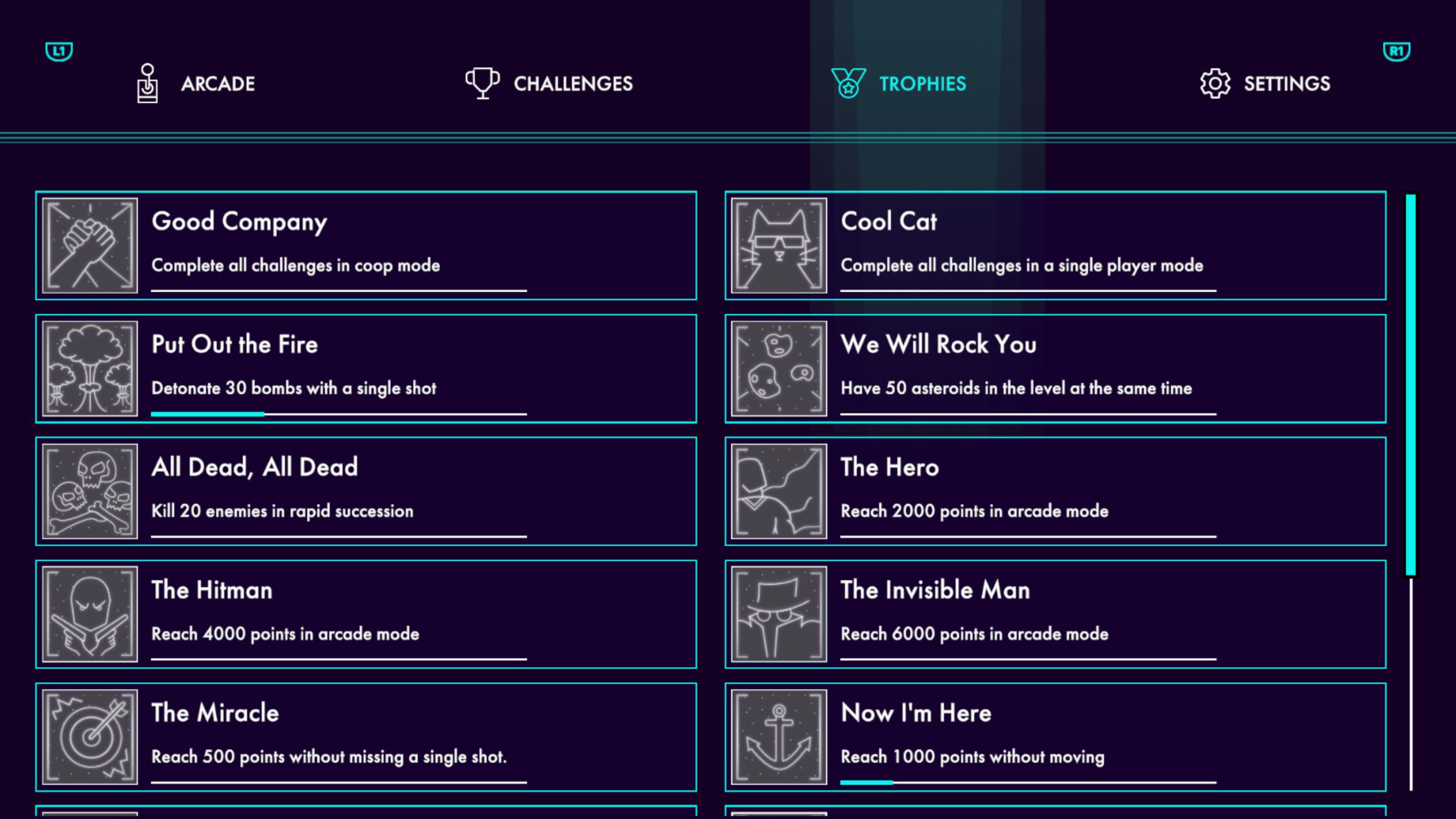 For those interested in trophies it’s always nice to be able to view all the trophies, along with their details within the game. You can also track your progress on each trophy using the trophy page.