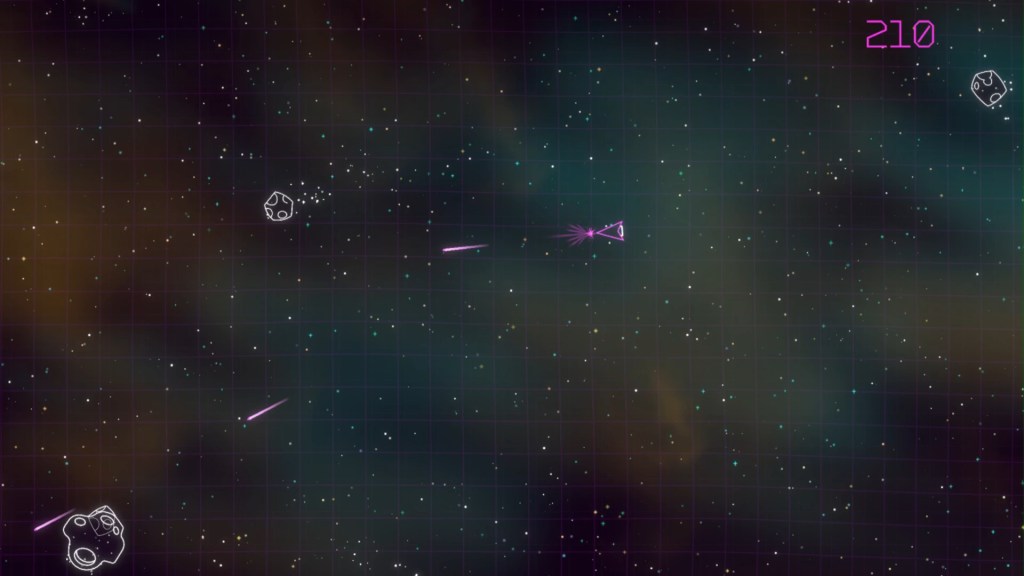Like the Recharged games that came before it, in Asteroids you only get one shot. If you make one mistake, hit one enemy, get shot one time you lose. Game over. You better hope you got that high score.