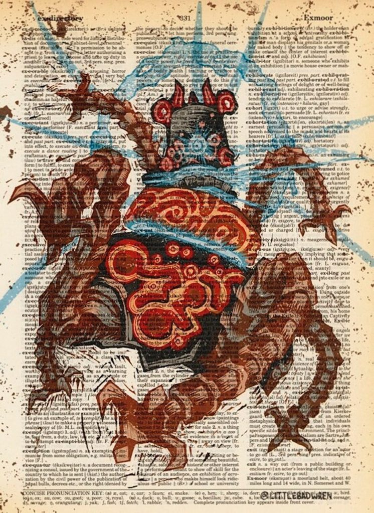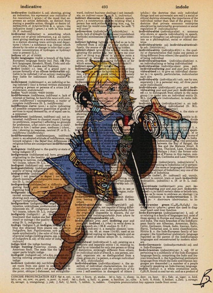 When I came across Brenda’s (Little Bad Wren) work I was first intrigued by the use of old book pages to create art. When I looked even closer the artwork was beautiful too. I also have always loved the idea of using old products or media as a canvas for art. I really enjoy the story of Brenda deciding to make her own art using what she had lying around.