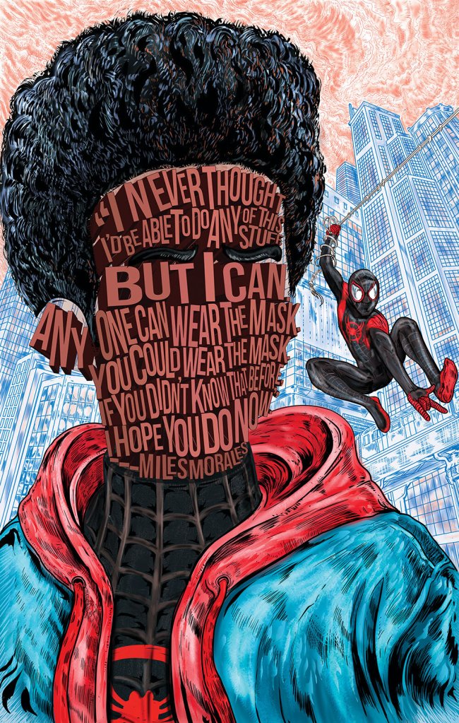 Nate Jones is a freelance illustrator/graphic designer with a degree in printmaking. I love the way he mixes typography with his illustration. His artwork stood out to me as I walked the floor of Supercon, because it is so unique and different. Not only is it a cool and original idea to merge 3D typography with portraits of characters, and include famous lines. He also found a way to have the words and letters blend perfectly into the portraits.