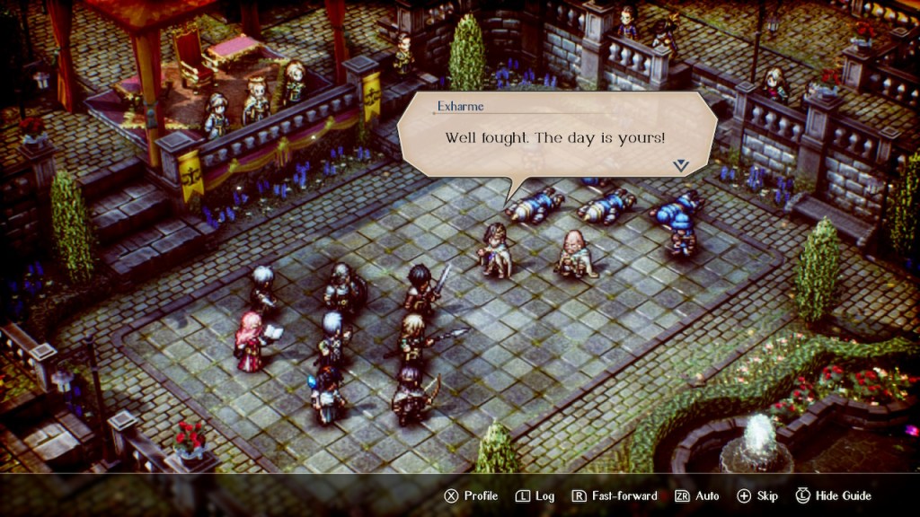 I chose to play Triangle Strategy on Easy because my goal was to get familiar with the battle system. Perhaps if I play the actual game I may move up to Normal mode. I’ve enjoyed the gameplay so far, even though I haven’t come across too many battles.