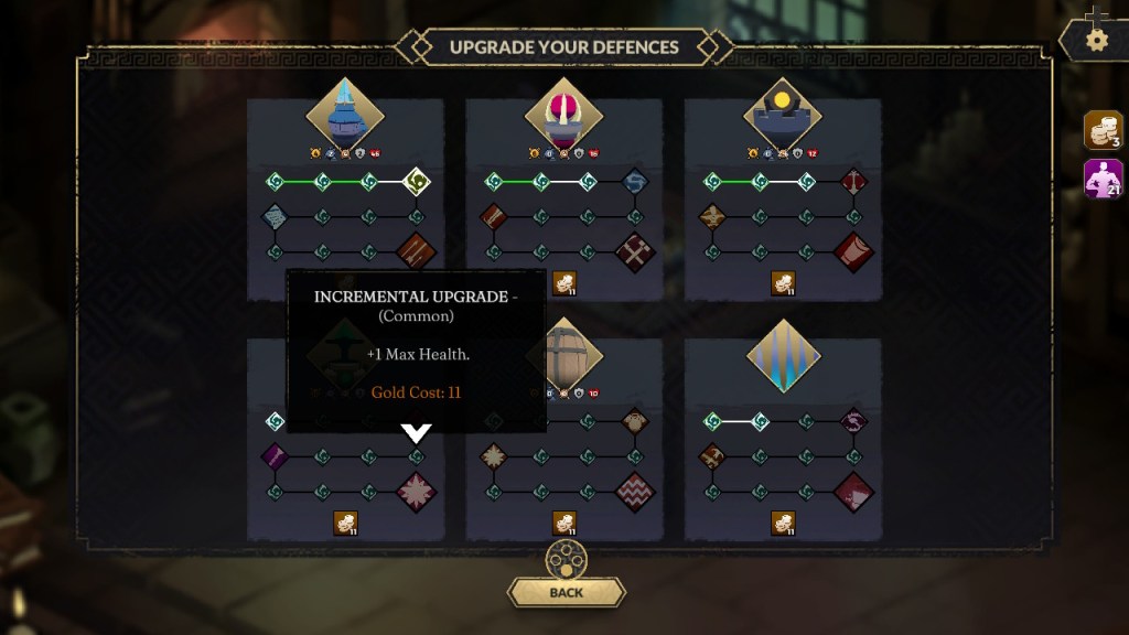 The game allows both permanent and temporary hero, ability and item upgrades. There are a few ways to slowly build your team and defenses. You also gain a small upgrade after each completed enemy wave. I have mostly used these quick upgrades to resurrect a hero from the dead.