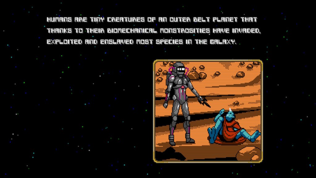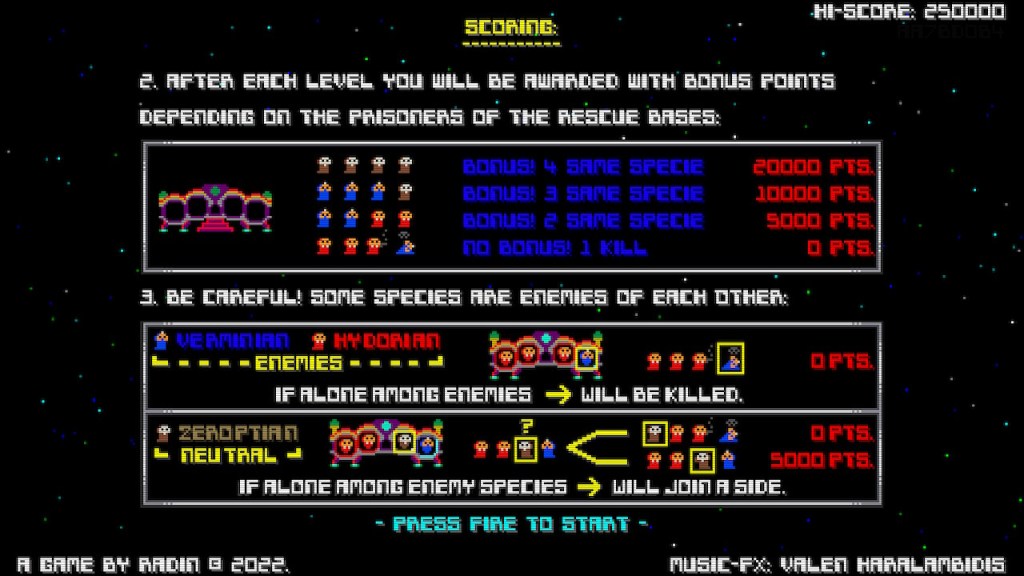 The more complicated part is keeping the different human races separate to maximize your score, and to make sure they don’t murder each other. While this looks like your average, old school “Pew Pew,” Kill the bad guys, collect some stuff, and score big points. There’s a bit more to it.