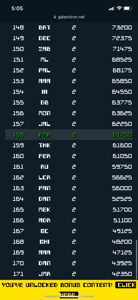I’ve been playing Galacticon since earlier this month. The gameplay takes me back to playing classic 80’s arcade cabinet games. Games like Joust, Asteroids, Defender and so many others come to mind. It isn’t only the gameplay that takes me back. The 80’s chiptune sounds along with the announcer’s muffled “Ready Player One!,” at the start of each level are also big on the nostalgia front.