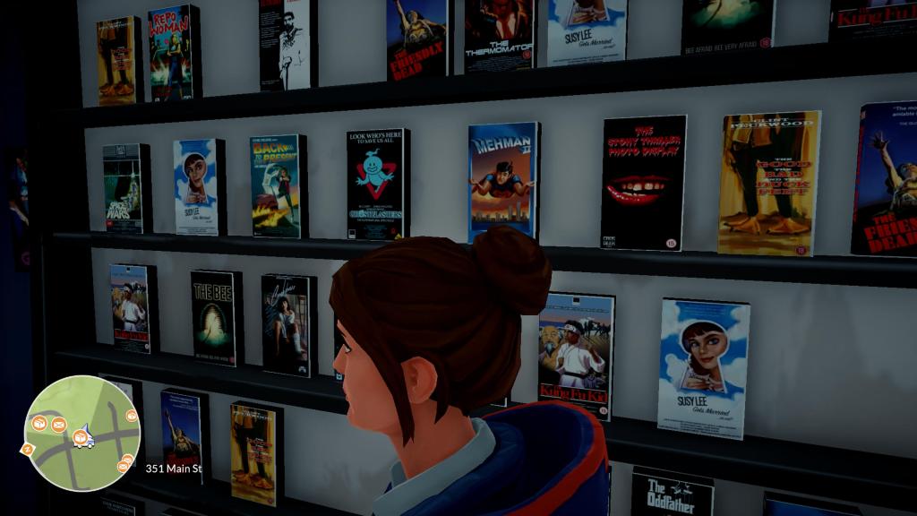 My favorite part of Lake was exploring the video store for all of the fake movie posters and VHS tapes. The general store also featured some fake brands. I found it a bit strange that during conversations, the characters referenced real movies from the time. It would have been funnier to go all out, and instead of saying, “I want to watch Big Trouble in Little China,” they could have gone with, “Let’s watch Small Order in Large Brazil.”