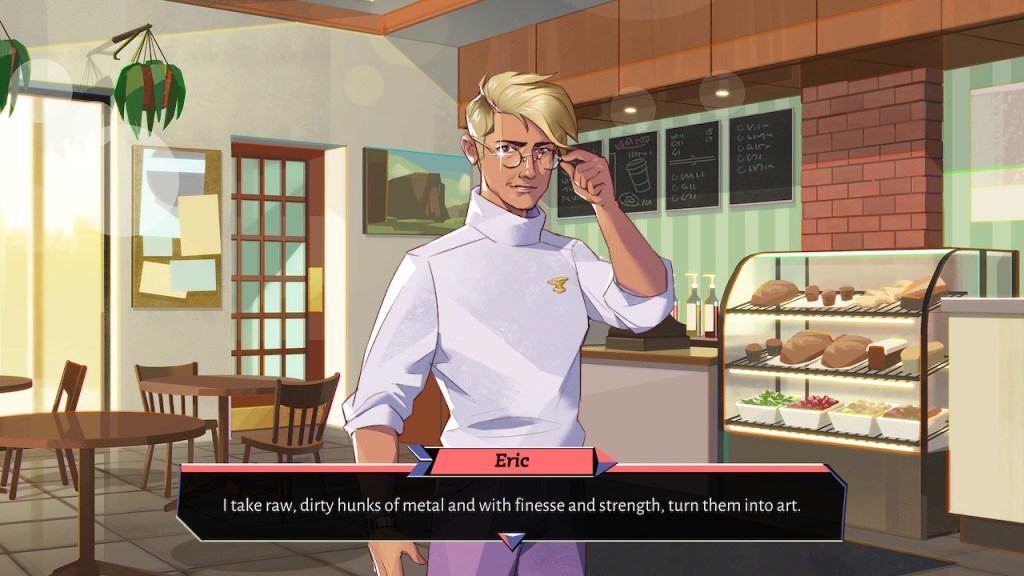 In Boyfriend Dungeon, you get to create your own character: choosing a name, gender, some visual details and even pronouns. I created elsie, a female (she/her). The story begins with elsie moving to Verona Beach for the summer, and the one person she knows in town is her cousin, Jesse. She even gets to live in his old apartment while in town.