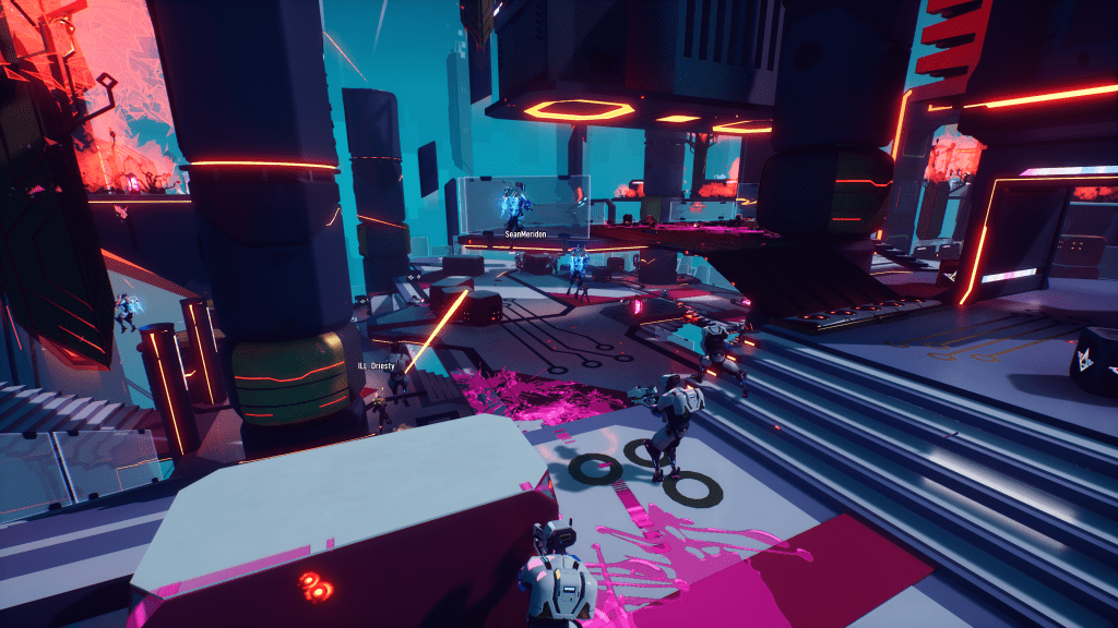 After playing through the tutorial I thought this was just going to be some new brighter, cyber-neon Fortnite game, or something like a cyber-Splatoon but with its own DeadMau5/Robot tunes. Even though I’m not really into the robot music tracks, I find the music in Arcadegeddon to be fun and enticing. The soundtrack is spot on for this specific world.