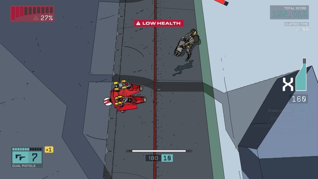 Skating and performing tricks in Rollerdrome feels on par with last year’s Tony Hawk’s Pro Skater 1 + 2, even though it’s mostly grabs, grinds, spins and flips. The addition of gun combat, dodging enemy House Players, and slowing time is not something I ever knew I needed in an extreme sports action game.