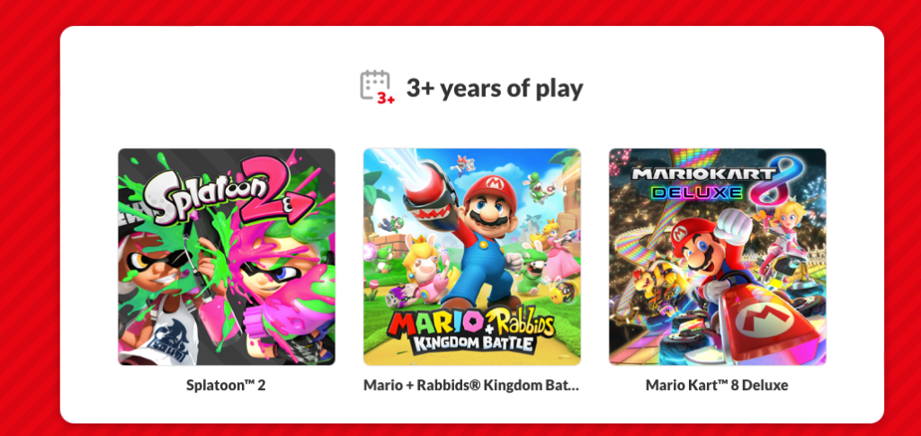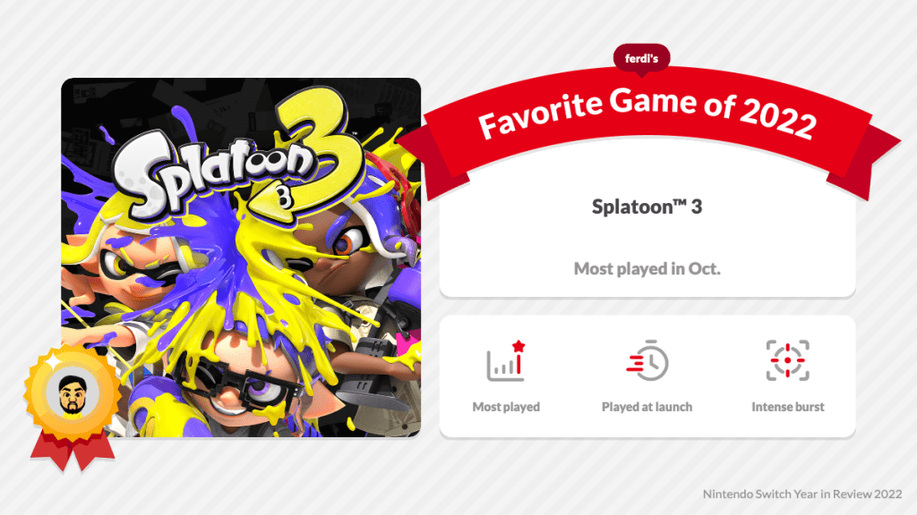 I played a total of 93 games, compared to 82 total in 2021. The review allows you to scroll through all of your games played that year, but only see the total hours, total days, and top month for each game. Instead of giving us the information we wanted from last year (total hours, TV vs handheld hours, and more) Nintendo gave us some random information that I don’t really care for. I know which games I played at launch, and I don’t really care that I’ve been playing three specific games for over three years.