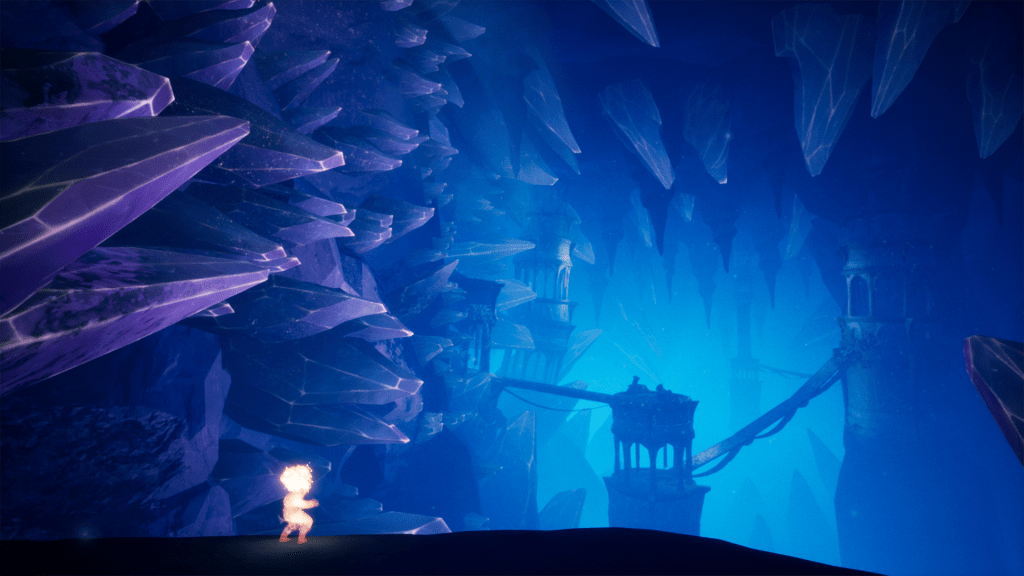 Strayed Lights is a marvel to behold. The visual style is unique and the world itself sort of feels like the 3D version of Ori and the Blind Forest. The lighting and reflections in this dark, yet lit up world really pop off the screen as you explore these rocky terrains.