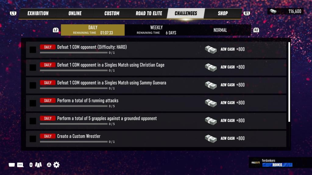 I’m happy to report that this game has zero microtransactions. Any cosmetics, items, or wrestlers in the shop are all available for purchase using AEW bucks, which players can earn by completing in-game challenges. There will be paid DLC (downloadable content) packs, which have already been announced — also, a season pass. Each DLC pack seems to feature two new wrestlers along with some mini-games.