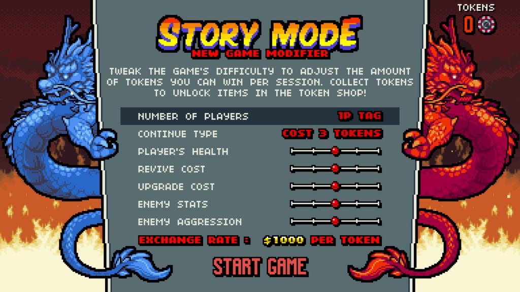 There are three ways to play Double Dragon Gaiden: Rise of the Dragons — Permadeath, Infinite, and the classic arcade mode (with “continues” costing three tokens). With each new run there are many accessibility features to help adjust the gameplay to your liking. The token shop will make any trophy hunter or digital collector want to replay the game over and over to purchase everything in the shop — New Characters, Game Tips, Artwork, and Music.