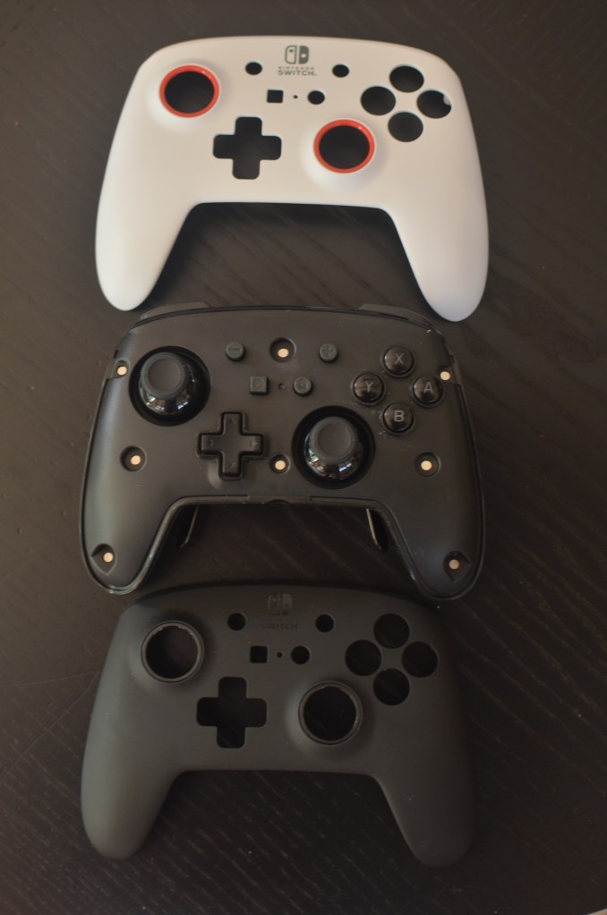 The Fusion Pro has a few extra features, some that I’m all about and others that are neat, but I haven’t found useful. First off, this controller brings with it two easily interchangeable faceplates (black and white). I started off only using the black faceplate for the longest time, but lately have switched over to the white plate. It contrasts more with my black, pink and green Splatoon 2 Pro controller.