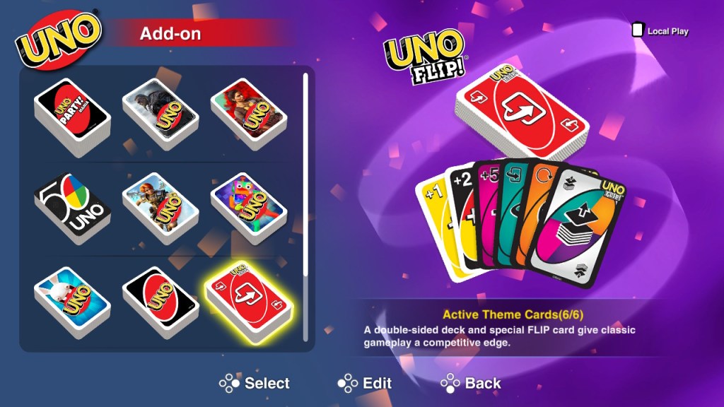 Digital UNO features the expected local or online play. Two different Nintendo Switches can even link up to play on separate screens.