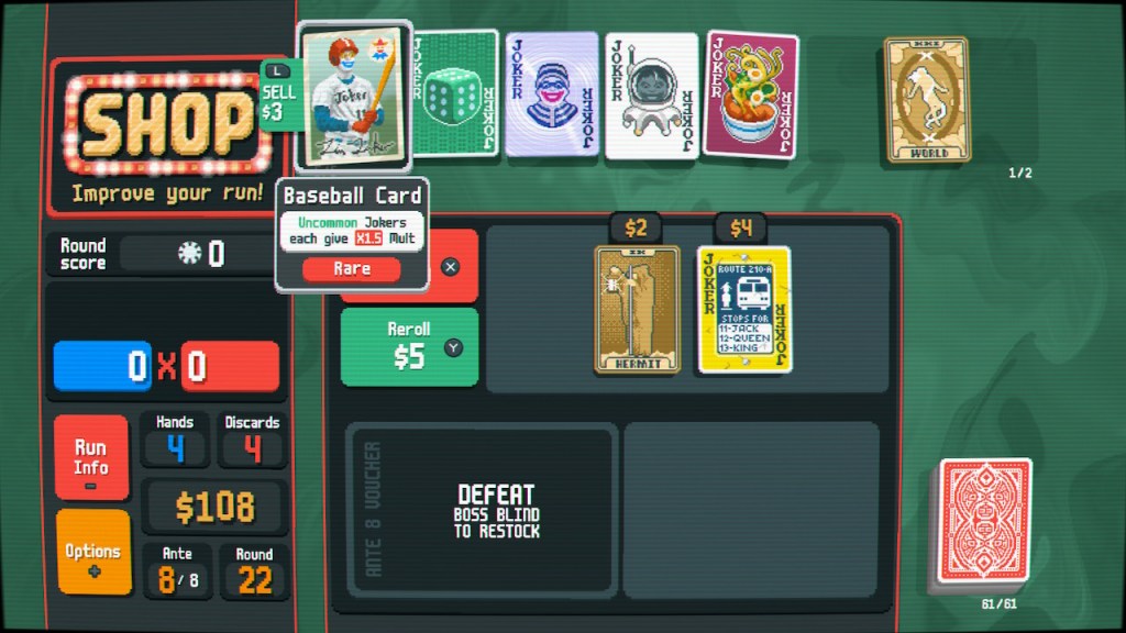 Some runs become “teaching runs.” You learn that certain jokers may seem good in theory, but don’t work well — or you just need to find the right combo. There’s also the chase of hunting down a card or ability you had in a previous run that would make the current run so much easier.