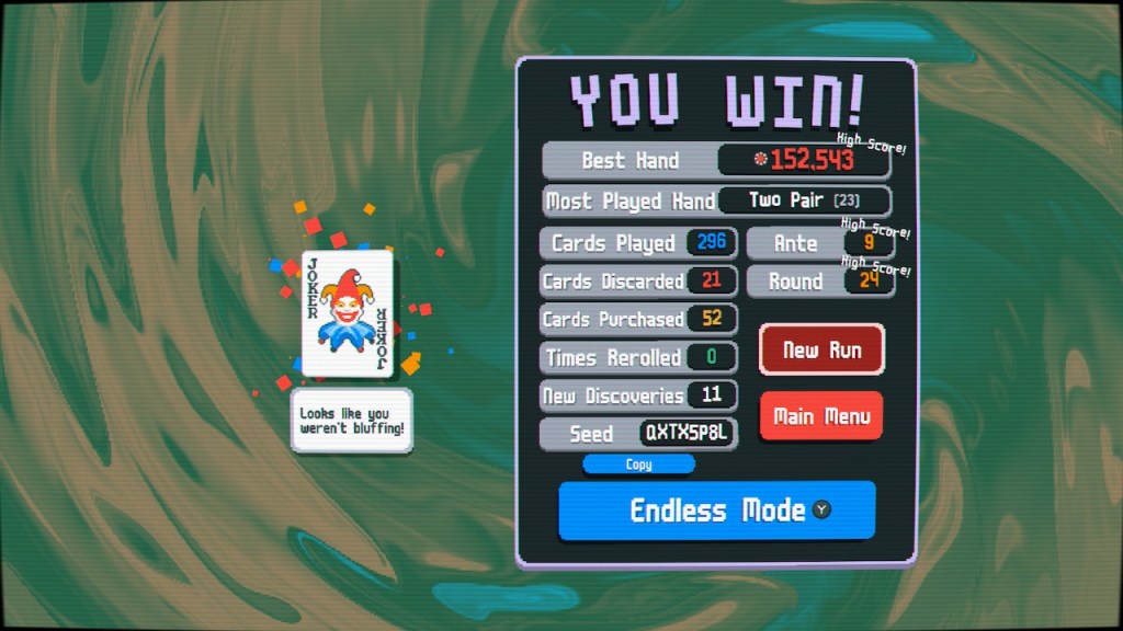 Each run feels completely different. You can work on building massive multipliers, adding more cards to your deck, leveling up different hands, or some combination of these and more.