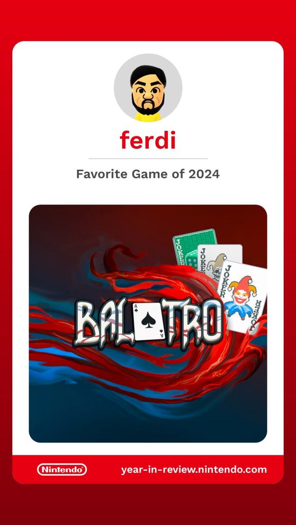 I was able to finish the main story of Star Wars Outlaws and Astro Bot — I even achieved a shiny new platinum in Astro Bot. I will continue Prince of Persia: The Lost Crown and hopefully, Horizon: Forbidden West in 2025. I’m am also very much not done with Balatro.