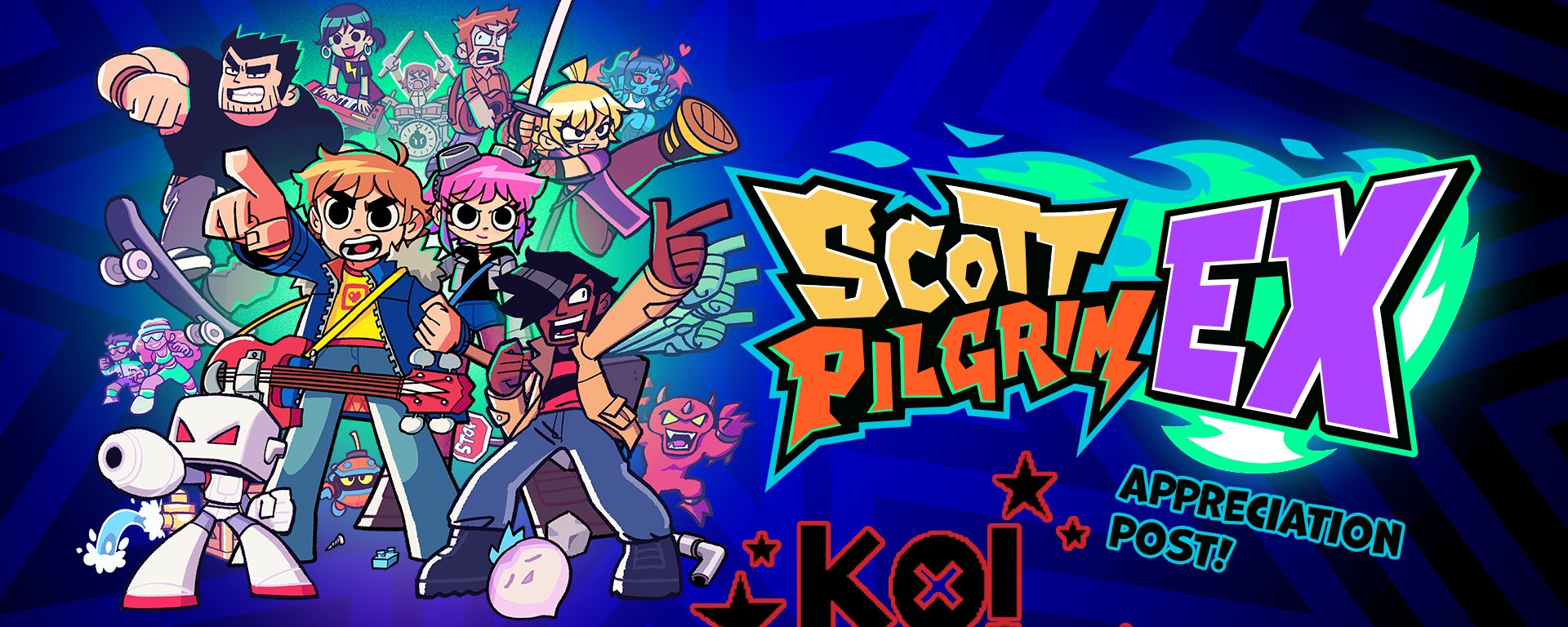 In the world of video game suffixes “EX” stands for Extra. As in, “this is a brand new story set in the Scott Pilgrim universe.”
